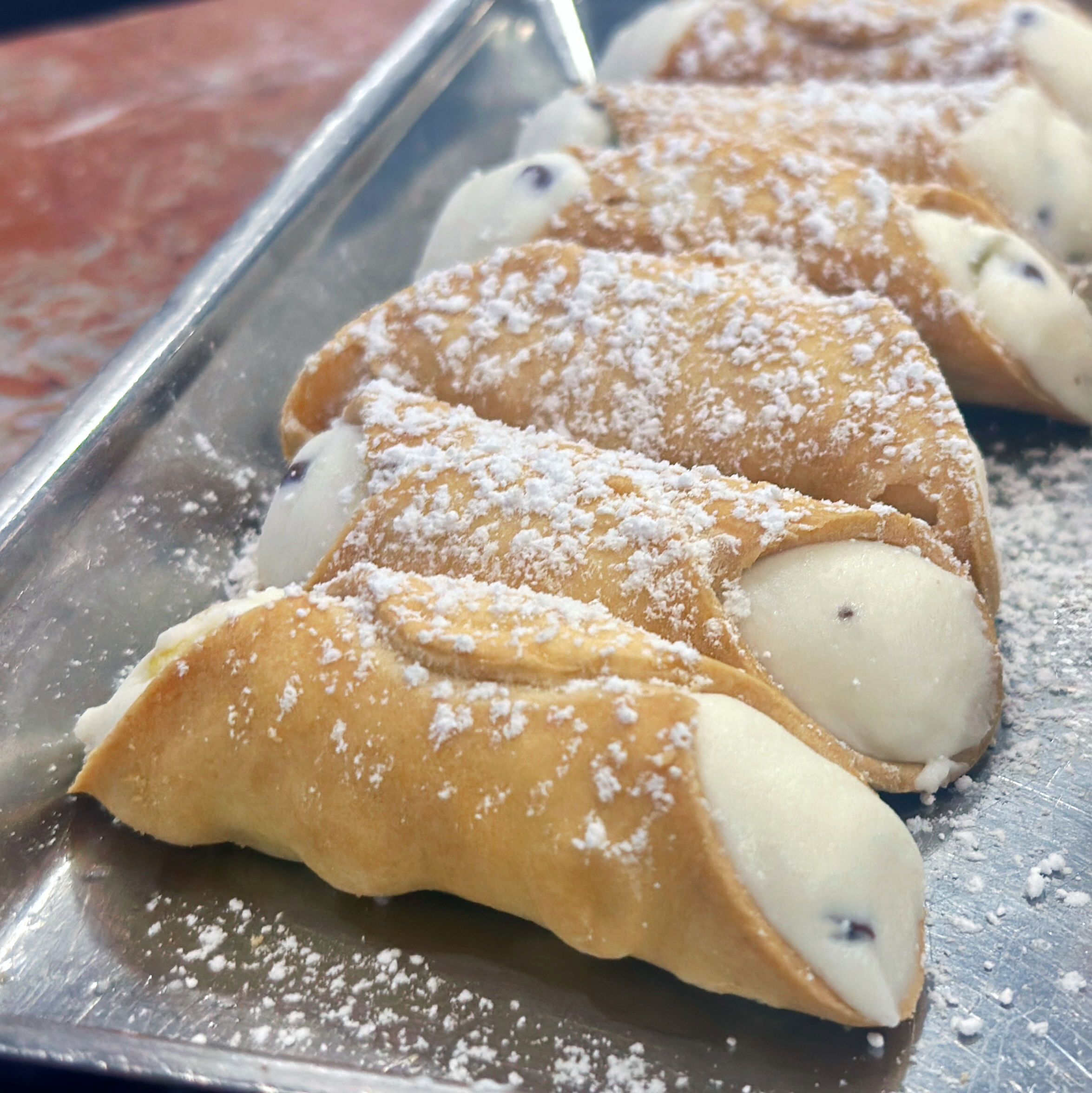 We begin with a light angel-food like Hong Kong sponge cake and Thai tea, followed by sumptuous pork and chive dumplings (veg alternative available) and then enjoy truly excellent pizza (and I'm a pizza snob), sample aged cheeses and salami from a century-old shop, and finish with Little Italy’s best cannoli (I guess I'm a cannoli snob too!).
